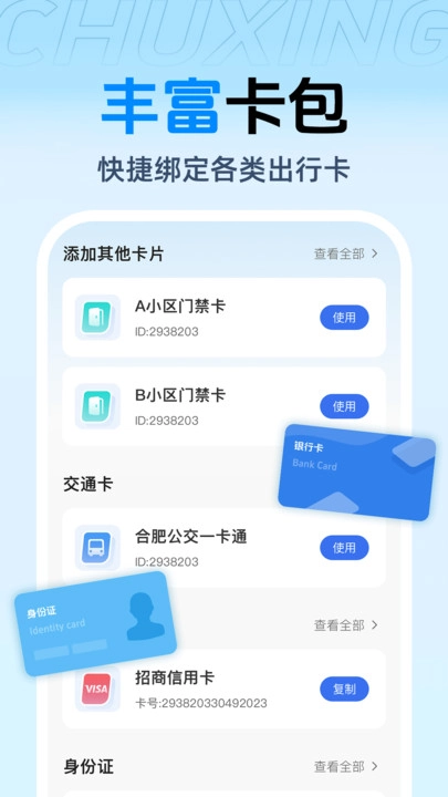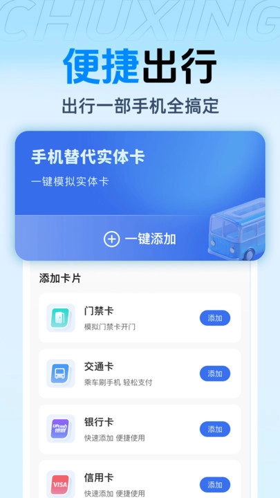 2、支持一键模拟实体卡、快速添加各类交通卡,告别繁琐的卡片携带。
