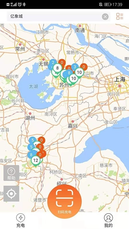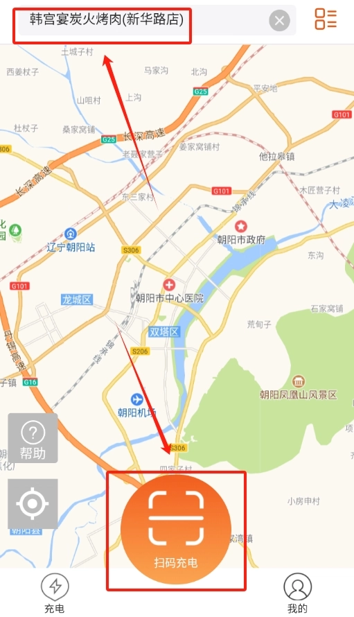 3、找到充电桩后,直接点击首页的扫码充电按钮,扫描设备二维码就能开始充电。