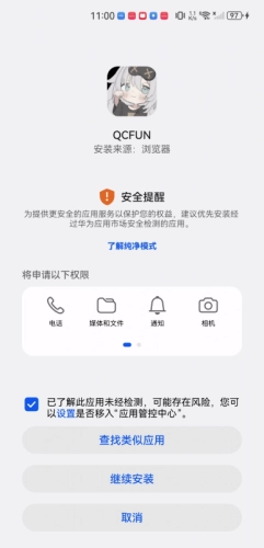 3、第三步,点击勾选“已了解此应用未经检测……”,接着点击“继续安装”。(若出现安全提醒,无需惊慌)
