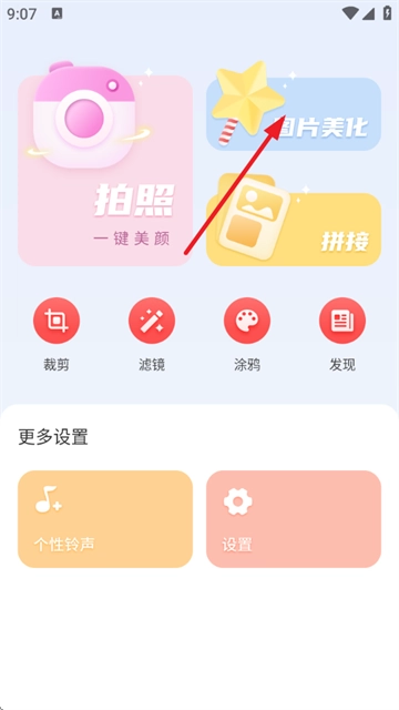 1、打开拍照大咖,选择图片美化功能;
