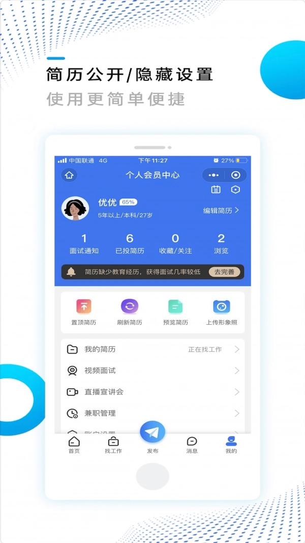 3、简历公开,隐藏设置,用户可以更加简单去使用。