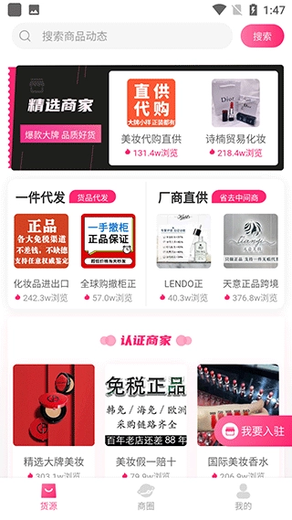2. 这款批发软件能聚合优质美妆货源,拥有海量一手货源,还支持一件代发。