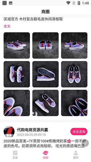 2、点击商圈,这里有各种商品发布,点击可以一键咨询;