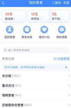 3、【患者管理】医生能够针对预约挂号、咨询以及患者报到的患者,开展标记备注分组工作,并在诊后对患者病情进行随访跟踪。