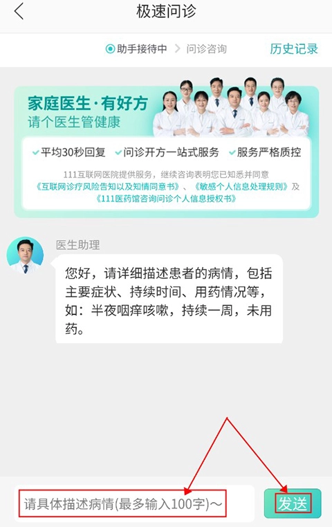 1、在软件中,用户能够进行在线问诊,通过点击首页的“家庭医生”即可进入。