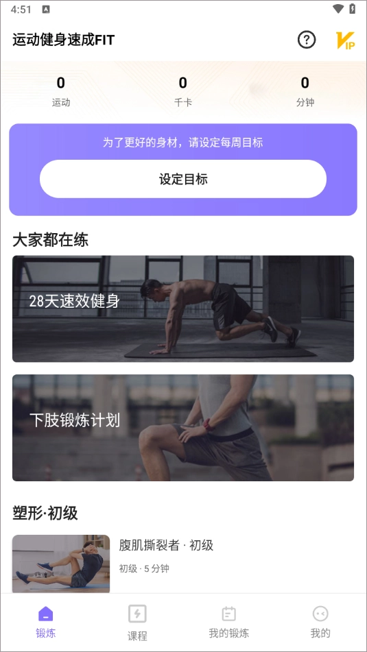 “运动健身速成fit”涵盖有氧运动、力量训练、拉伸放松等各类健身训练方案,用户能够依据自身需求挑选适宜的训练内容。