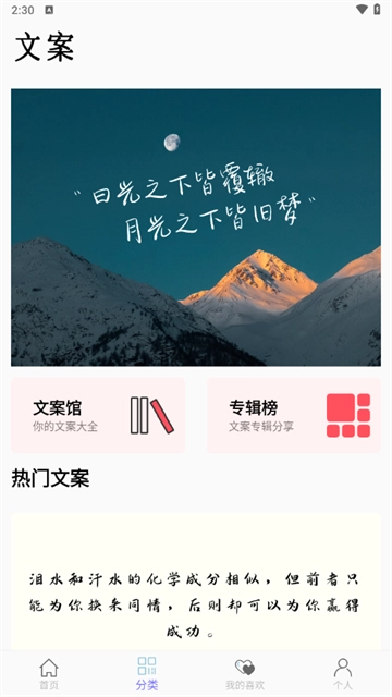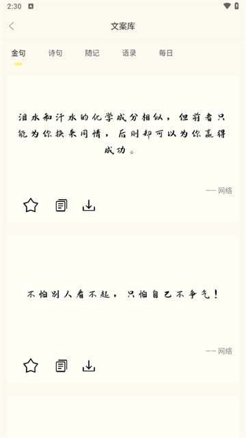 2. 轻点文案馆,便能浏览到诸多文案,按下按钮就能复制文案。