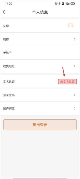2、进入到个人信息界面之后,选择下面的实名认证功能。