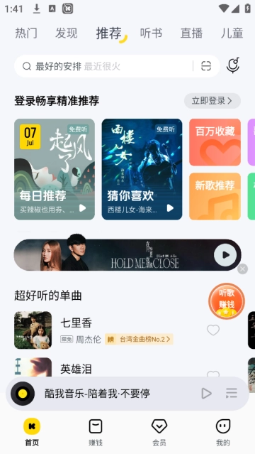 千万量级正版高品曲库,可无限畅听周杰伦、林俊杰、张学友、Taylor Swift、BLACKPINK、Seventeen等歌手的歌曲。