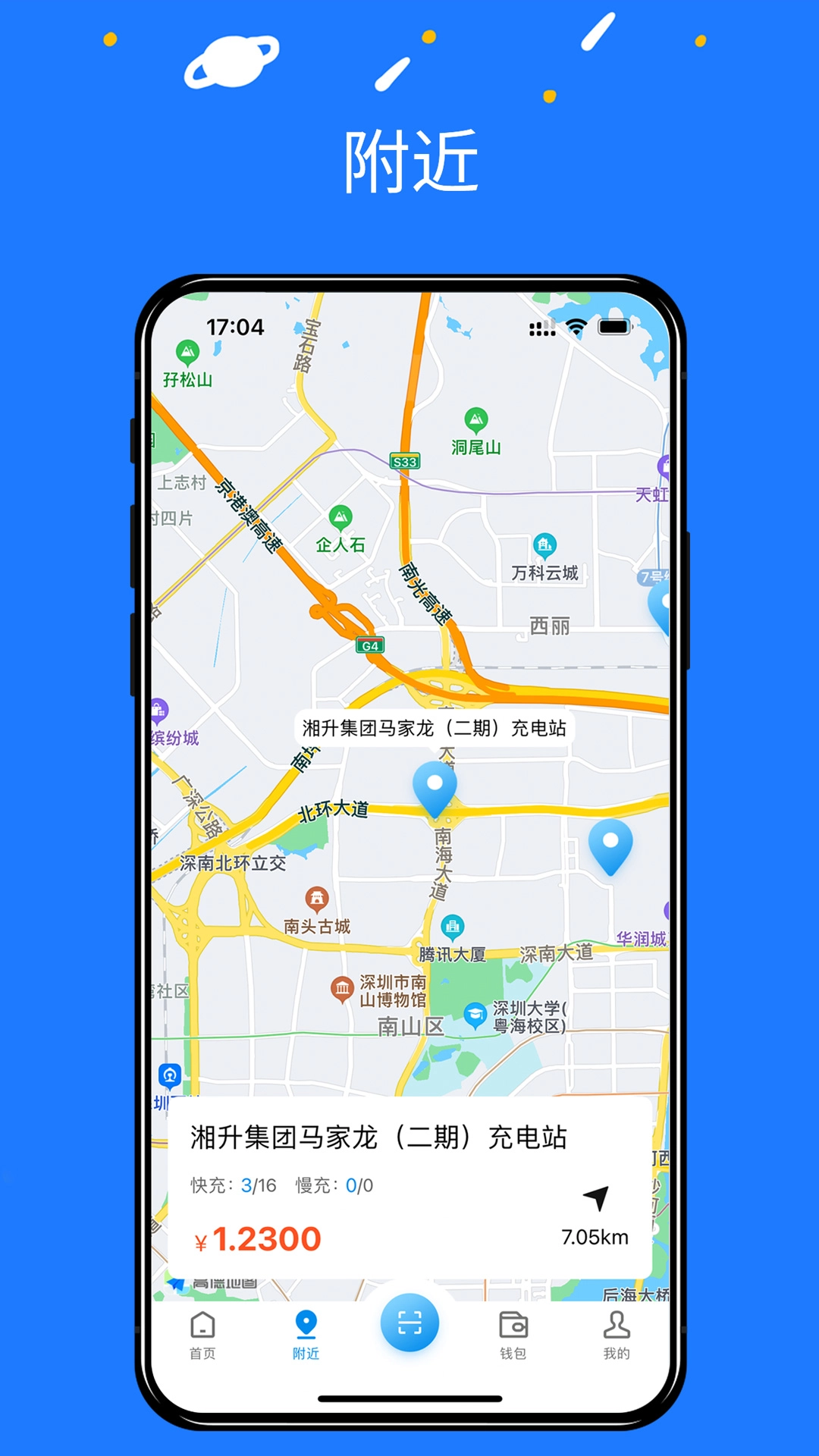 湘升充电App为新能源汽车车主用户提供地图找站、钱包充值、扫码充电等新能源汽车充电相关服务。