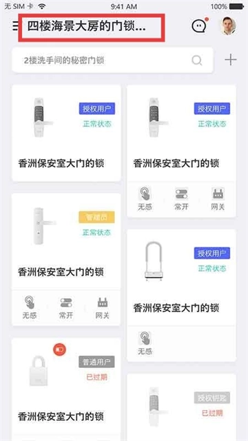 1、同时标注无感、常开、网关等标识,以便用户对多个智能门锁进行统一管理。