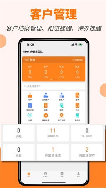 2.客户跟进提醒