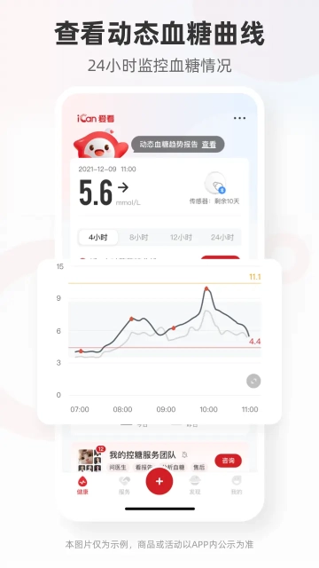 4、专业控糖咨询:由专业医护团队随时在线服务,为您提供定制化的饮食与运动建议,解答您在控糖方面的各类疑惑。