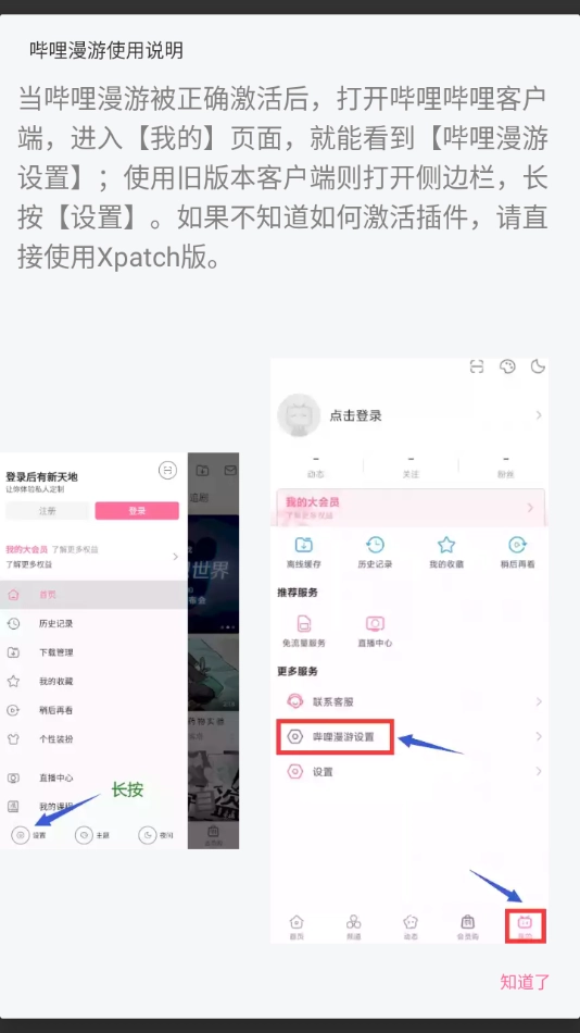 安装漫游版客户端并启动(无需添加至太极或应用转生),就能看到提示【哔哩漫游已激活】。