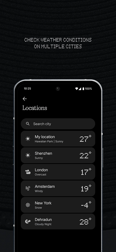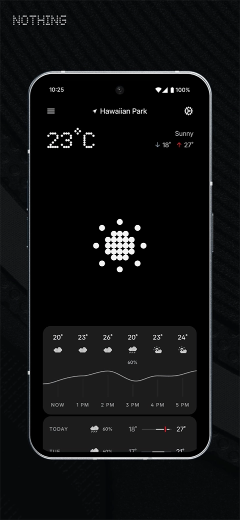 2、安装完成后,一进入应用,便能看到极为炫酷的天气图标动画,这是专属nothing phone的标志性视觉体验。