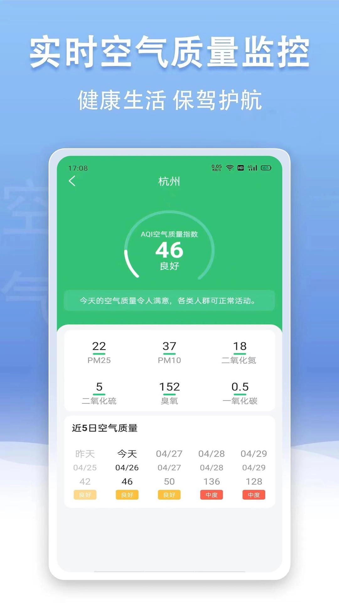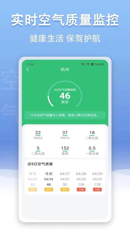 5. 空气质量预警功能,支持在线查看空气质量污染程度,同时会及时发出预警。