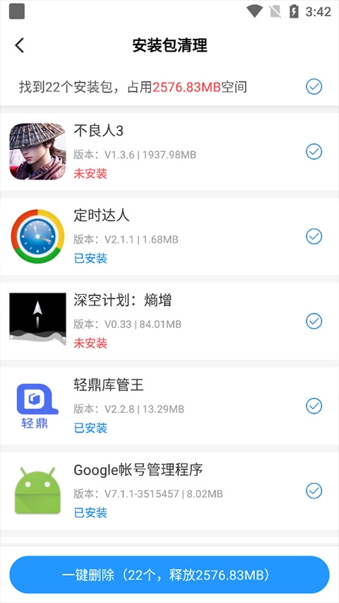 8、此外,已安装的游戏包能够进行删除清理操作,从而为手机释放内存空间。