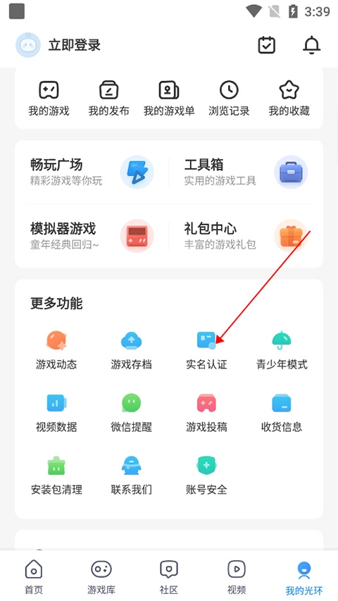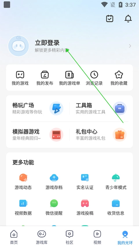 1、用户在本站免费应用后,将应用安装至手机,打开应用便会进入如下页面。在此页面,用户点击底部的【我的光环】 。