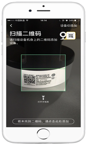 1.登录后,点击 设备 主界面右上角的“+”,扫描无线网络摄像机机身上的二维码,如下图: