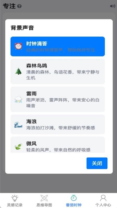 了实用的番茄时钟工具,选择喜欢的背景声音来实时聆听,享受静心时刻。