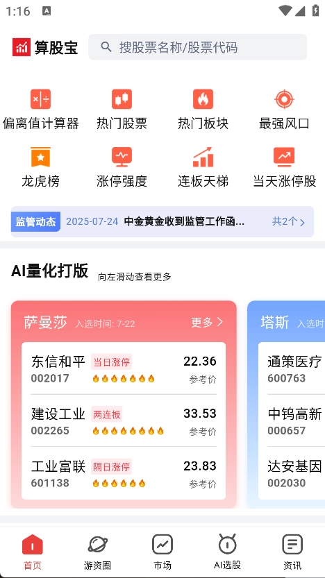 算股宝,一款为投资爱好者量身定制的智能选股软件。它凭借全面的股市行情剖析、实时热点资讯的及时推送、多样的选股模式以及个性化的投资服务,助力用户高效完成选股与交易,满足个性化投资诉求。不管是初涉股市的新手,还是经验老到的投资者,都能借助这款软件更清晰地洞察市场动态,优化自身投资组合,达成高效理财目标。要是你渴望在股票市场中精准抓住投资契机,提高投资效率,算股宝无疑是值得尝试的选择。
