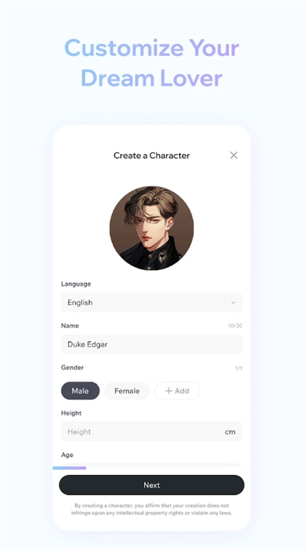 角色自定义功能:用户可自主设计AI角色的姓名、年龄、职业、性格甚至口头禅,上传自定义头像,打造完全符合自己想象的“理想型”;支持调整角色的回应风格,让互动更贴合个人偏好。