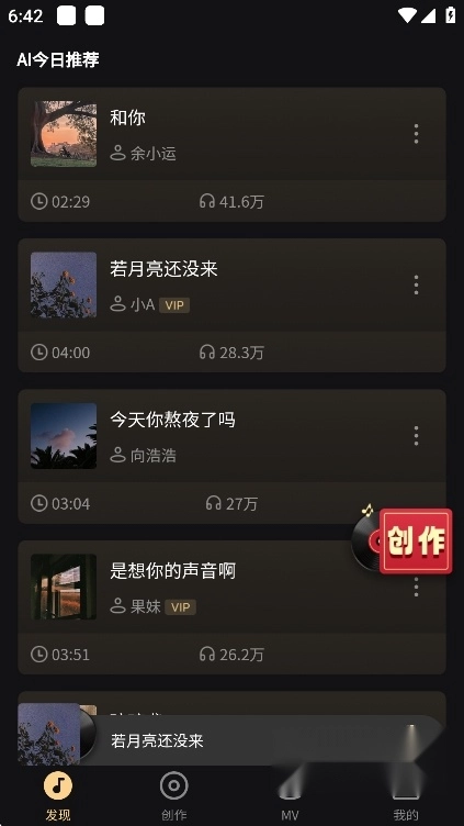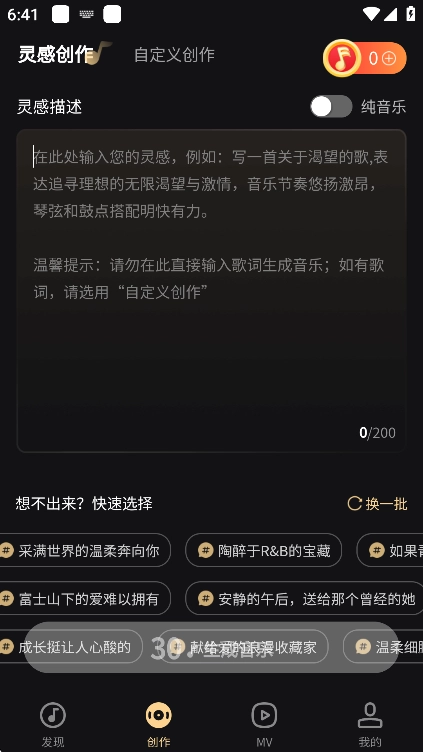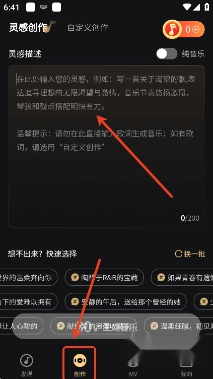 用户们也可以在创作页面,借助AI技术开启AI音乐创作之旅