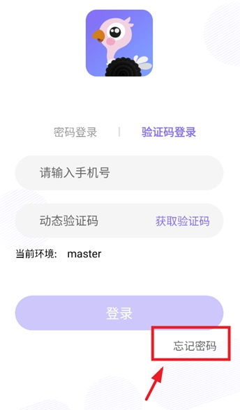 安装并打开鸵宝,进入登录界面后点击忘记密码;