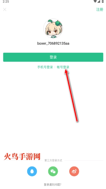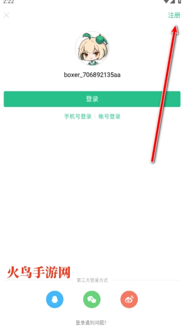 7.如果是想切换成已注册过的新账号,请点击账号登录。
