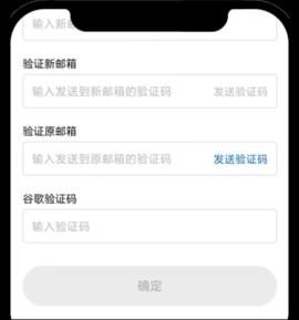 2、按照要求依次输入【新邮箱】、【新邮箱验证码】、【原邮箱验证码】以及【谷歌验证码】,之后点击【确定】,最后点击【迁移账号】。