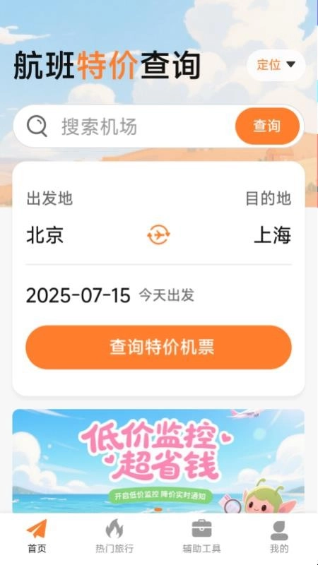 软件允许用户一键查询特价航班机票,通过输入起始地与目的地实时查询特价机票。
