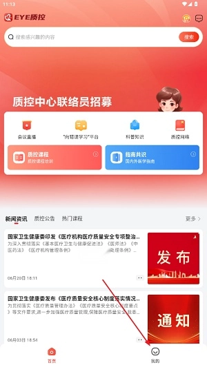 1、进入EYE质控后,点击我的;