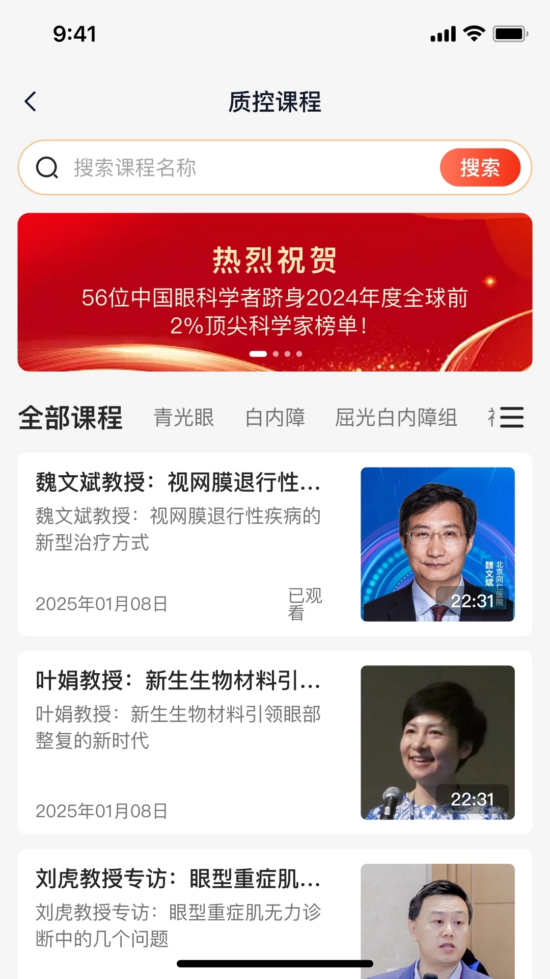 应用内课程类型丰富多样,各类眼科相关课程一应俱全,可随时开启自由学习之旅。