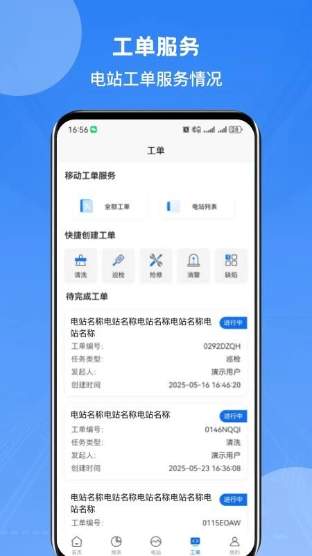 4、用户也可以查看电站工单服务情况,快捷完成待办服务工单。