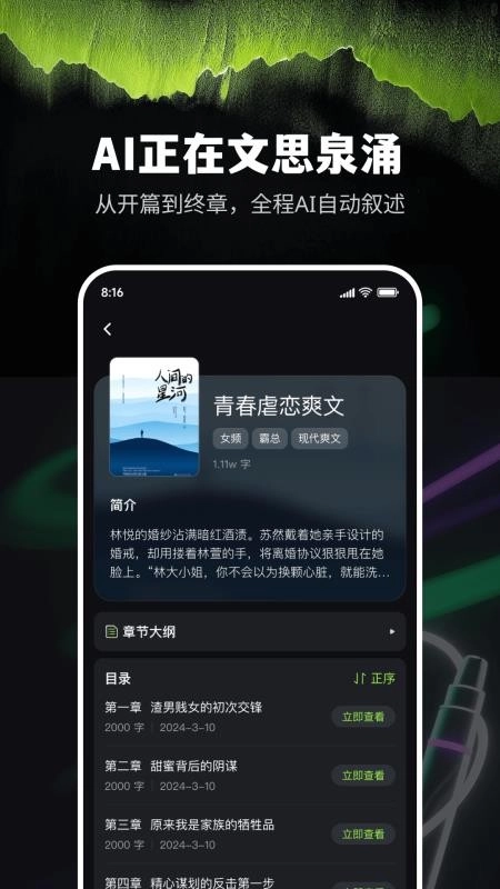 4、软件会依据需求迅速助力你开启创作,使你能轻松创作出小说。