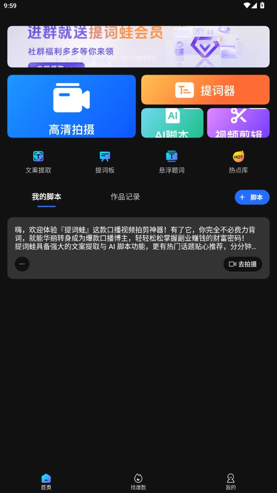 提词蛙,一款集视频创作提词、写稿、拍摄、剪辑功能于一体的工具!