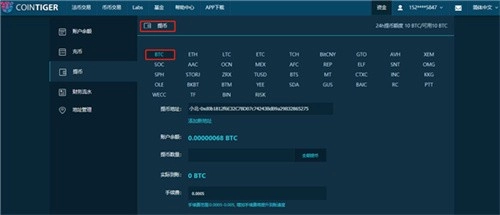 以BTC提现为例进行说明: