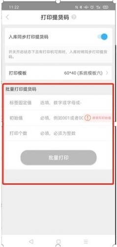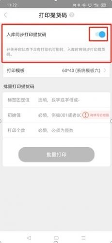 2、开启入库同步打印提货码功能,在连接好打印机后,一旦进行入库操作,系统就会自动打印出相应包裹的提货码,把它张贴到包裹上就行。