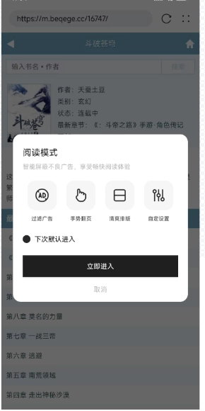 4、该软件会自动屏蔽不良广告,点击“立即进入”,就能直接进入阅读模式。
