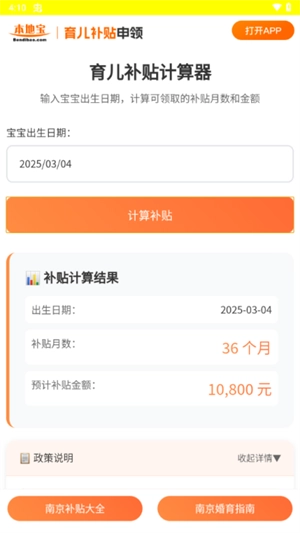 育儿补贴申领计算器,是特别针对新推出的育儿补贴打造的计算利器。你仅需输入宝宝出生日期,就能迅速知晓自己是否具备领取资格,并算出总共可领取的金额。这款计算器融合了最新政策阐释与各地规定,还为大家提供详尽的领取指南。要是你感兴趣,就快来七匣子感受一番吧!