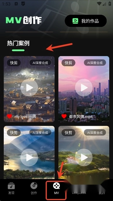 用户们也可以在MV页面挑选自己喜欢的视频模版