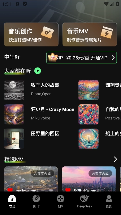 MV 制作功能涵盖 MV 视频制作模块。在此模块中,当用户选定视觉主题后,AI 便会自动为其匹配音乐,并生成动态画面。不仅如此,用户还能够对字幕样式、转场特效等元素进行自定义设置,进而达成从音乐创作到视频制作的一站式服务体验。