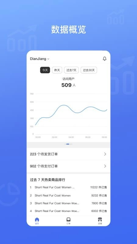 实时统计展示店铺经营数据,方便用户随时在线查看,从而了解店铺经营状况。