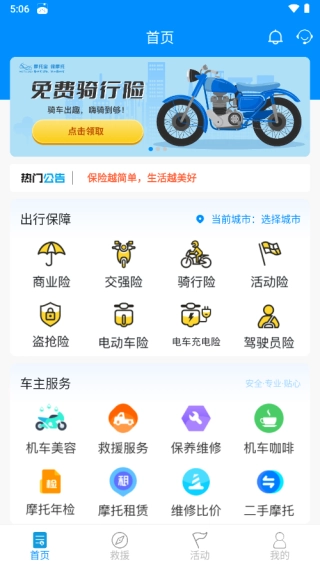 为您的爱车全方位护航出行,提供交强险、商业险、骑行险等多种险种。