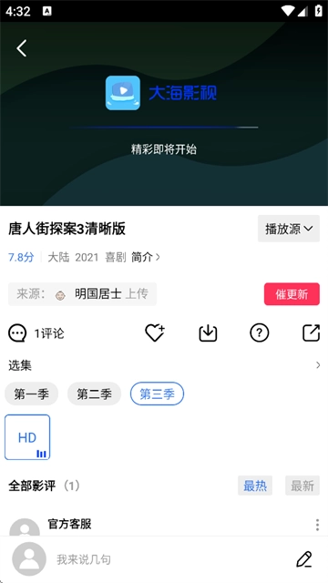 大海视频,一款能免费看剧的宝藏软件,深受众多朋友喜爱。其内容丰富全面,电影、电视剧、综艺、动漫等应有尽有。各大影视平台资源实现第一时间更新,让你随时掌握精彩内容,快来使用吧!
