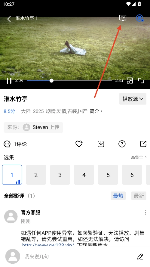 2.点击右上角TV投屏。