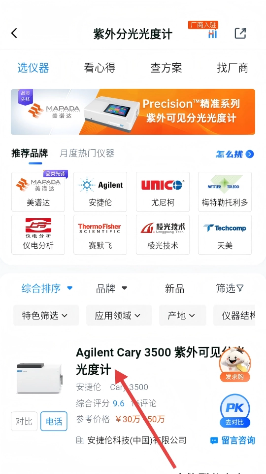 1. 多维度仪器查询功能:能够依据仪器原理以及应用行业进行分类检索,助力用户迅速锁定目标设备,并提供详尽的参数以及供应商相关信息。