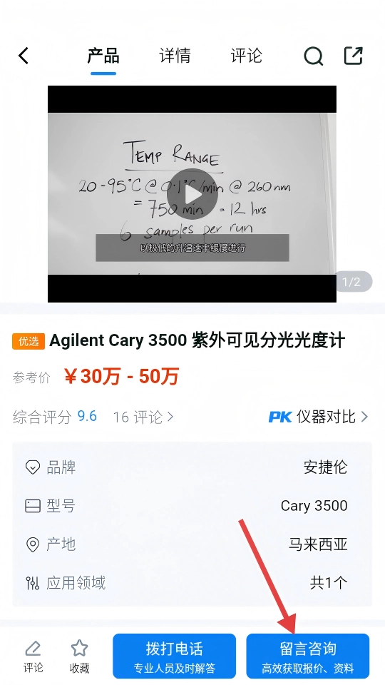 4、在产品详情页点击【留言咨询】按钮,即可向商家咨询产品报价、资料等相关问题。