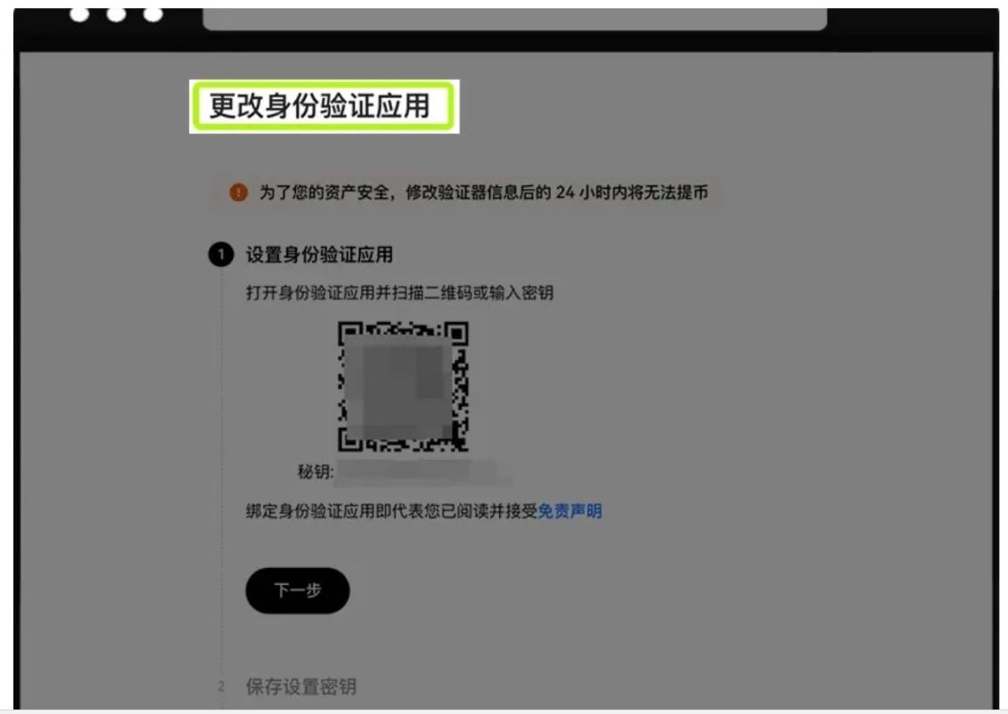 修改身份验证应用(谷歌)24小时内,将无法进行提币。