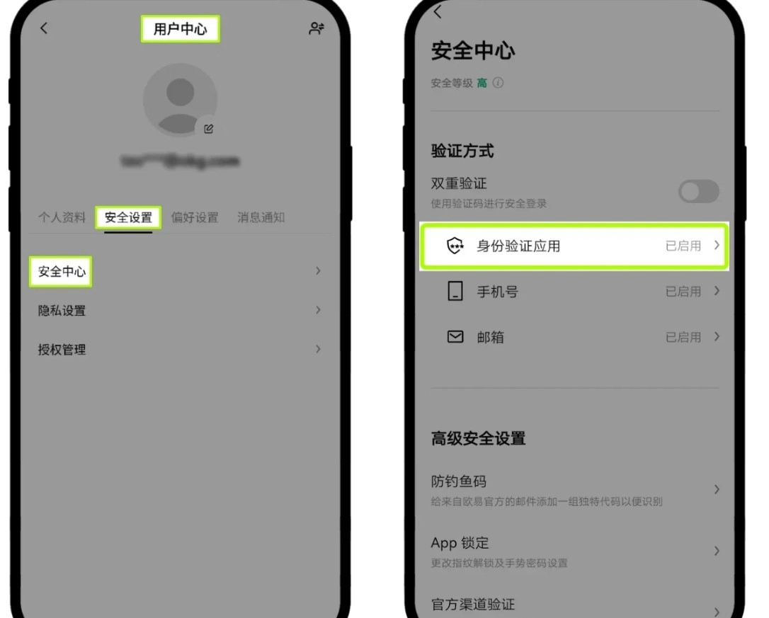 在欧易App首页,轻点右上角图标,进入个人中心,依次找到【安全中心】-【安全设置】-【身份验证应用】(谷歌)。